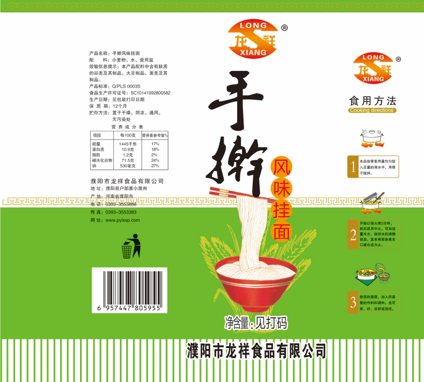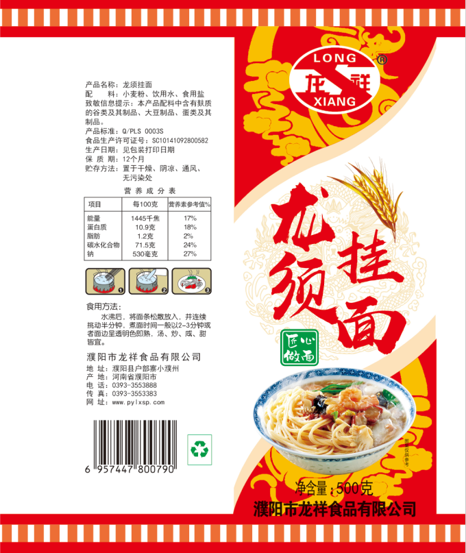 濮陽(yáng)市龍祥食品有限公司位于河南省濮陽(yáng)縣戶部寨鎮(zhèn)小濮州,始建于1994年,前期投資200萬(wàn)元,經(jīng)過幾年的努力,大力開發(fā)市場(chǎng),由于市場(chǎng)的需求量急劇上升,出現(xiàn)供不應(yīng)求,于2004年擴(kuò)建,建成一座新型的現(xiàn)代化面粉加工企業(yè),并擁有全國(guó)先進(jìn)全自動(dòng)生產(chǎn)設(shè)備一套,產(chǎn)量由以前的100噸/天,提高到現(xiàn)在400噸/天。 2012年再次擴(kuò)大規(guī)模申請(qǐng)為濮陽(yáng)市龍祥食品有限公司,注冊(cè)資金500萬(wàn)元。2012年又投資800萬(wàn)元新建掛面生產(chǎn)線一條,日產(chǎn)掛面50噸。龍祥食品有限公司現(xiàn)有職工120余人,總工程師1人,專業(yè)技術(shù)人員10人,經(jīng)濟(jì)師1人,會(huì)計(jì)師1人,銷售人員2人,優(yōu)秀專業(yè)人員20余人。  龍祥公司自創(chuàng)建以來,社會(huì)效益十分可觀。公司一直以“今天的質(zhì)量,明天的市場(chǎng)”為信念,“一切為了客戶需求,竭誠(chéng)追求完美品質(zhì)”為企業(yè)宗旨,走專業(yè)化經(jīng)營(yíng)和職業(yè)化管理的路子。